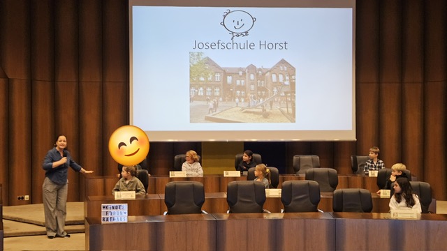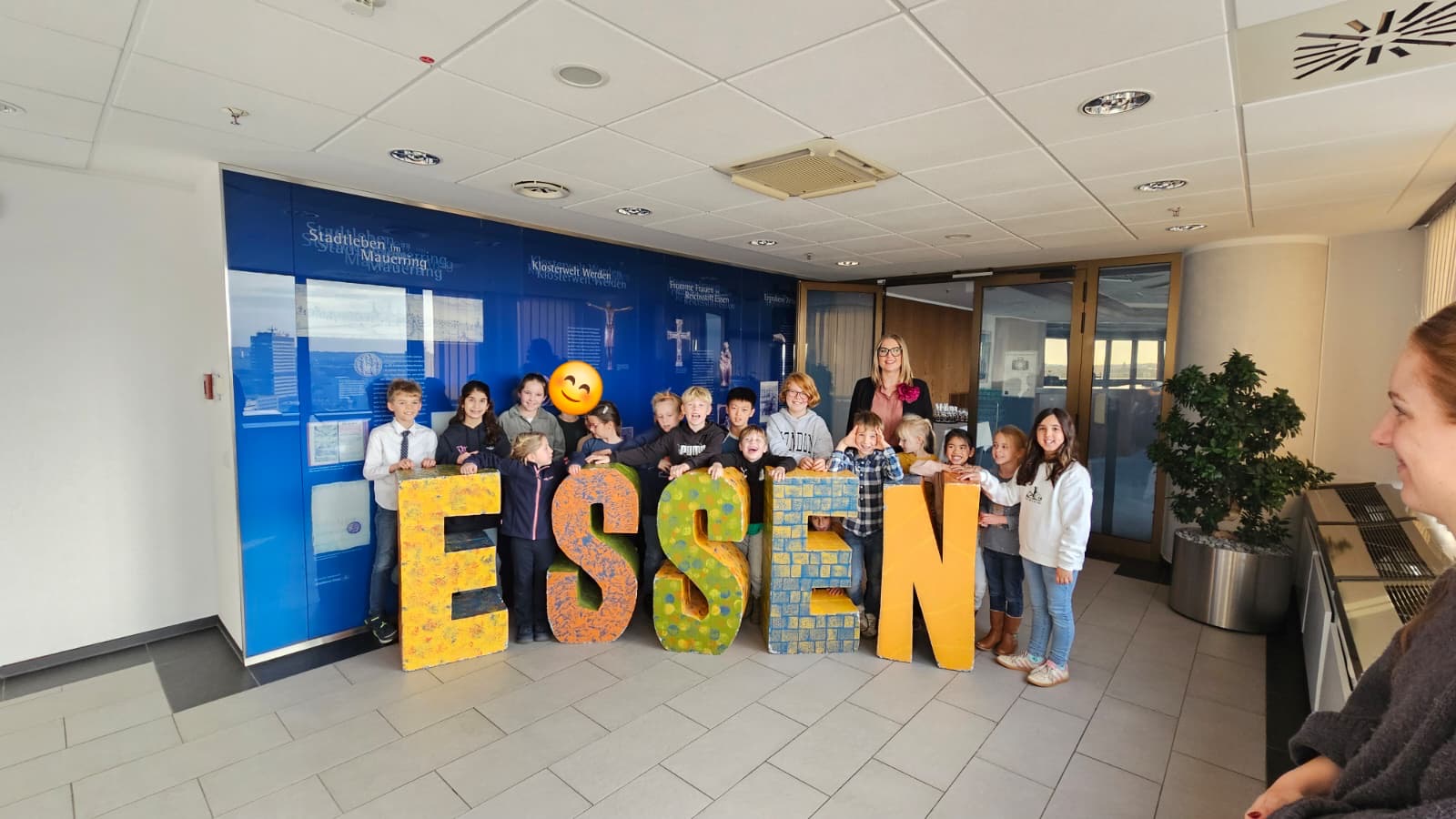 Am 13. November hat sich das Josi-Parlament zusammen mit Frau Sondermann, Frau Neumann und Herrn Pfundner auf den Weg ins Rathaus der Stadt Essen gemacht. Dort angekommen, wurden wir von Frau Taron vom Kinderforum begrüßt und es ging in den Raum des Kinderforums. Dort warteten auch noch Frau Kaffka vom Jugendamt und Leonie, eine weitere Mitarbeiterin des Rathauses auf uns. Zunächst haben wir ganz viel über die Stadtverwaltung und die Aufgaben des Oberbürgermeisters erfahren.