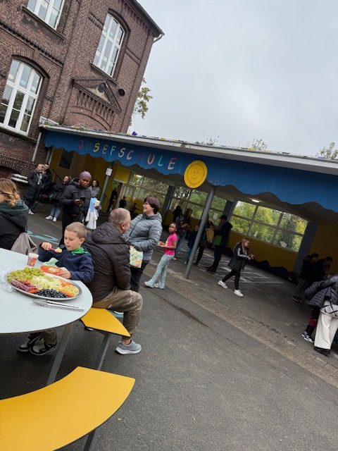 Am 7. Oktober haben wir uns zum Kennenlernen zu einem Klassenfest auf dem Schulhof getroffen. Einige Familien haben für ein reichliches buntes Büffet gesorgt. Wir haben gespielt, gequatscht und gesungen. Es war ein schöner Nachmittag.