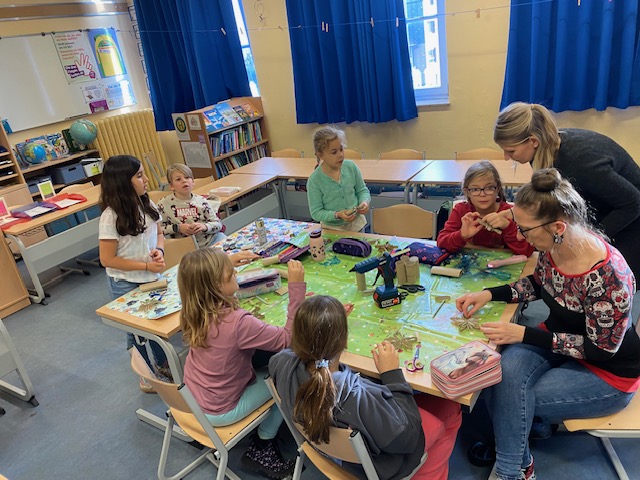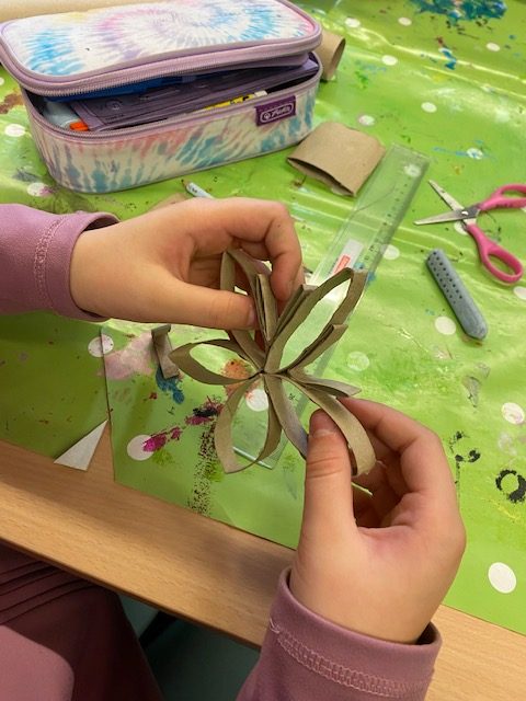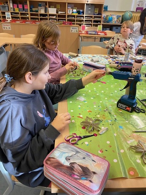 Sehr emsig ging es heute mal wieder in der Kreativ-AG der OGS zu. Aus Küchen- und Klorollen wurden goldene Sterne zum Aufhängen erschaffen. Ein echter Hingucker, der beim Adventsbasar sicherlich guten Absatz findet.