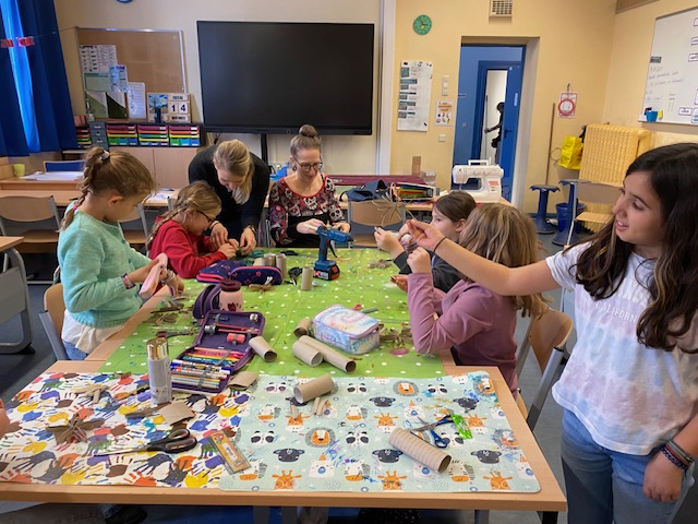 Sehr emsig ging es heute mal wieder in der Kreativ-AG der OGS zu. Aus Küchen- und Klorollen wurden goldene Sterne zum Aufhängen erschaffen. Ein echter Hingucker, der beim Adventsbasar sicherlich guten Absatz findet.