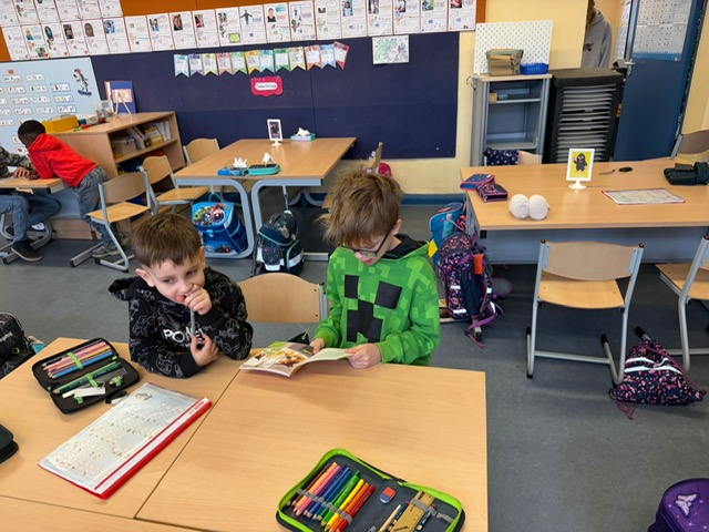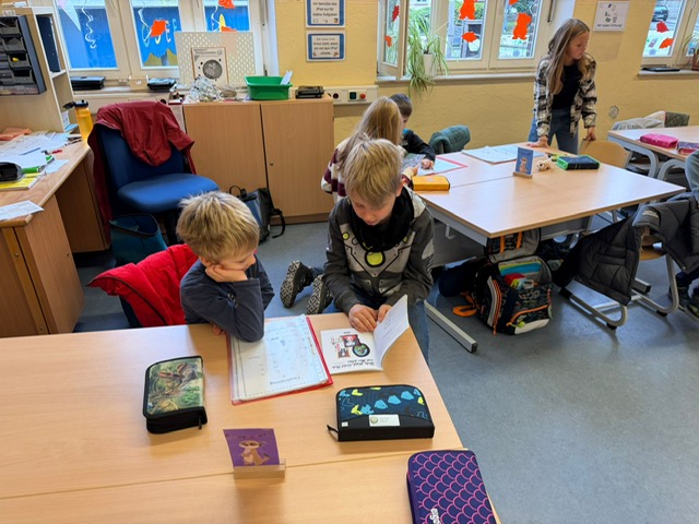 Die gemeinsame Lesezeit war ein voller Erfolg: Überall wurde gestaunt, gelacht, konzentriert zugehört und fleißig vorgelesen. Für beide Klassen war es eine wertvolle Erfahrung – die Großen konnten ihr Wissen weitergeben und Verantwortung übernehmen, während die Kleinen Motivation und Sicherheit beim Lesen gewannen.