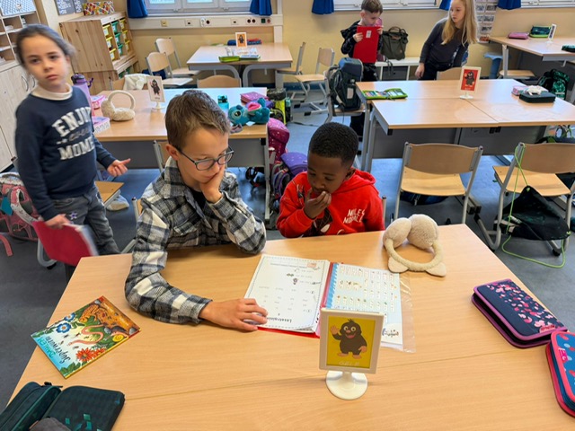 In dieser Woche fand eine besondere Lesezeit statt: Die Erdmännchen und Bärenklassen trafen sich als Patenklassen, um gemeinsam in die Welt der Geschichten einzutauchen.